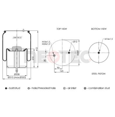 Vehicle Application: Renault C, D series, E-Tech D (2020-on) Volvo FE (2006-on) FE3 Electric (2019-on)Article criteria adjustable Adjustable on one side External Thread Size M24 x 1,5 Cone Size 30 mmL...